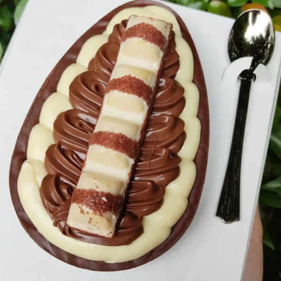 Uma sofisticada casca de chocolate nobre , cuidadosamente preparada e recheada com um creme intenso de Kitket e chocolate 50 % Finalizado com generosos pedaços de Kit Kat, que trazem a crocância perfeita e elevam a experiência a cada colherada. Uma combinação irresistível entre cremosidade e crocante, criada para quem aprecia chocolates marcantes e uma Páscoa com sabor de verdadeira indulgência.