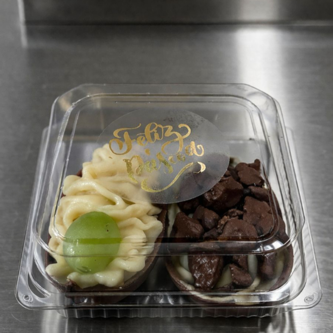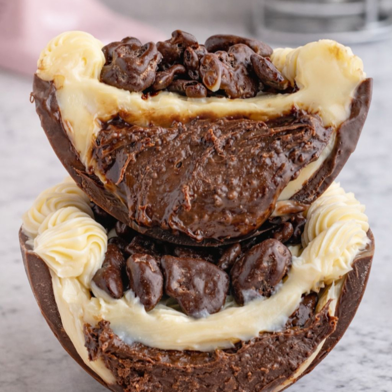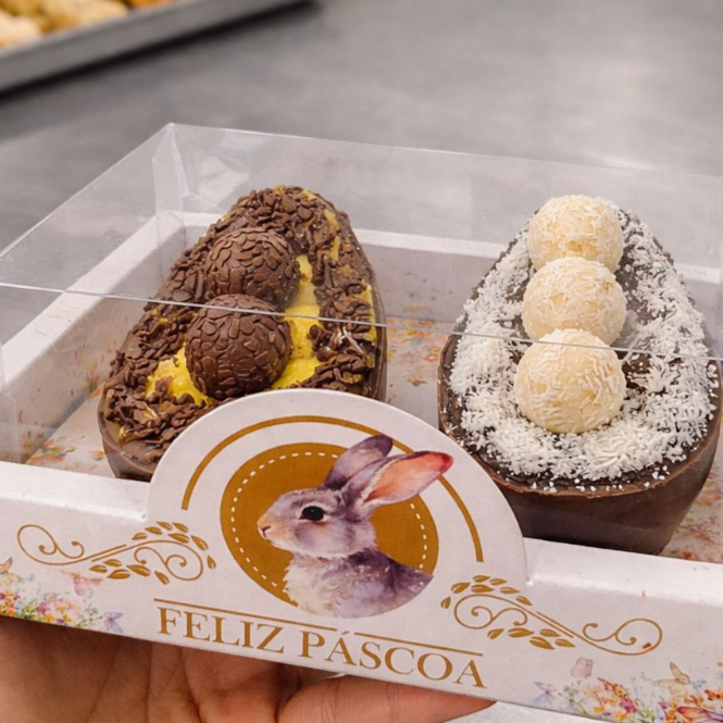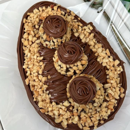 Uma elegante casca de chocolate ao leite, recheada com um creme aveludado, Ferrero Rocher e chocolate 50%, finalizada com Nutella e um toque crocante que torna cada colherada ainda mais especial. Uma combinação sofisticada de chocolate, avelã e crocância, perfeita para quem busca uma experiência irresistível e marcante nesta Páscoa. 🍫✨