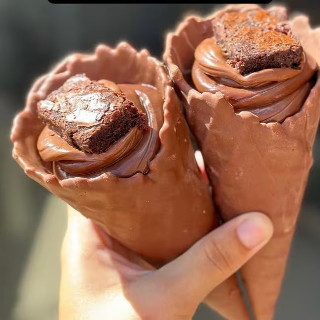 Delicioso Cascão de chocolate Ninho com Nutella, uma perfeita combinação de sabores irresistíveis. Uma casquinha de chocolate banhada no chocolate, recheada com creme suave de Ninho, pedaços macios de brownie e generosa camada de Nutella. Uma explosão de sabor para os amantes de chocolate e Nutella. Aproveite essa experiência única e se delicie com cada mordida!