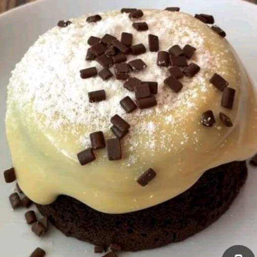 Delicioso Mini bolo vulcão de massa branca recheada com brigadeiro branco e uma deliciosa cobertura de chocolate 50%. Peso aprox: 350g