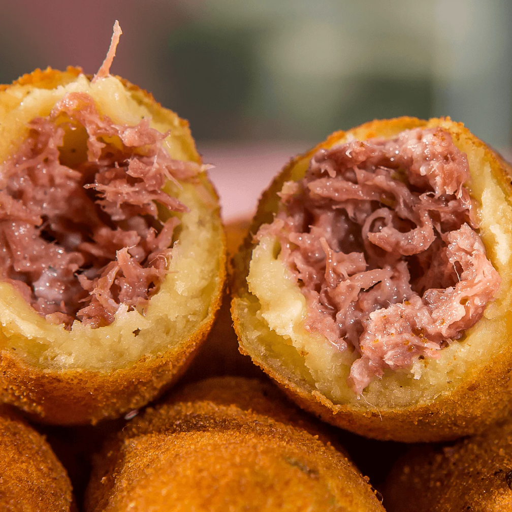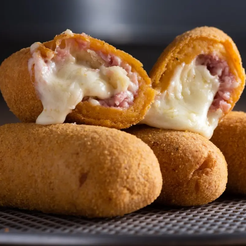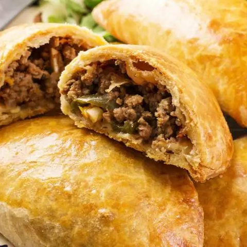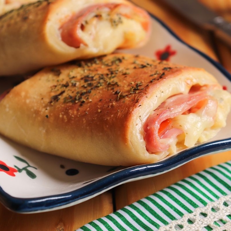 pao de forma caseiro recheado com carne de hamburguer, queijo e presunto.