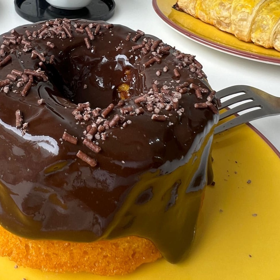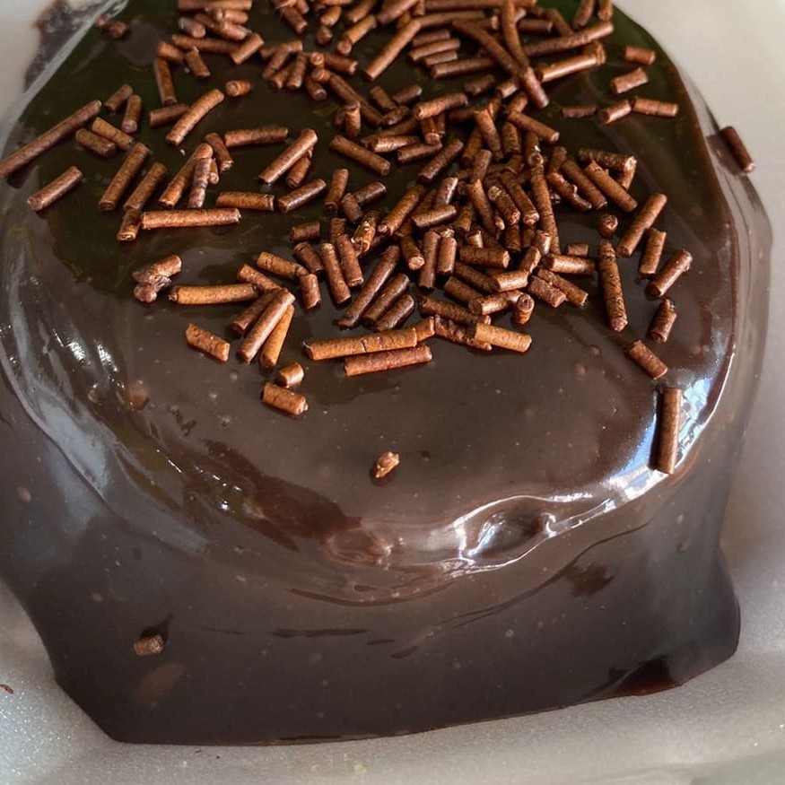 Delicioso bolo vulcao com aproximadamente 300 g, feito com bolo de cenoura, mega fofinho e recheado com nosso brigadeiro tradicional cremoso