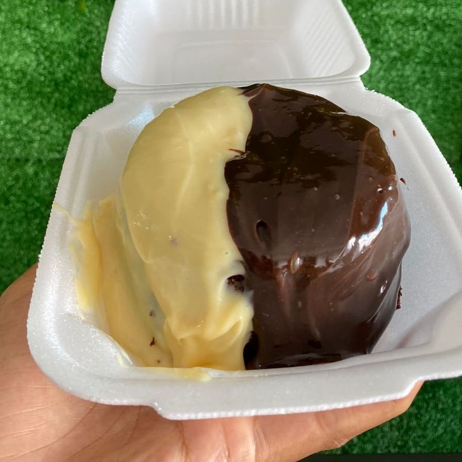 Delicioso bolo vulcao com aproximadamente 300 g, com bolo de chocolate 50% cacau e camadas do nosso brigadeiro de Ninho cremoso e brigadeiro tradicional.