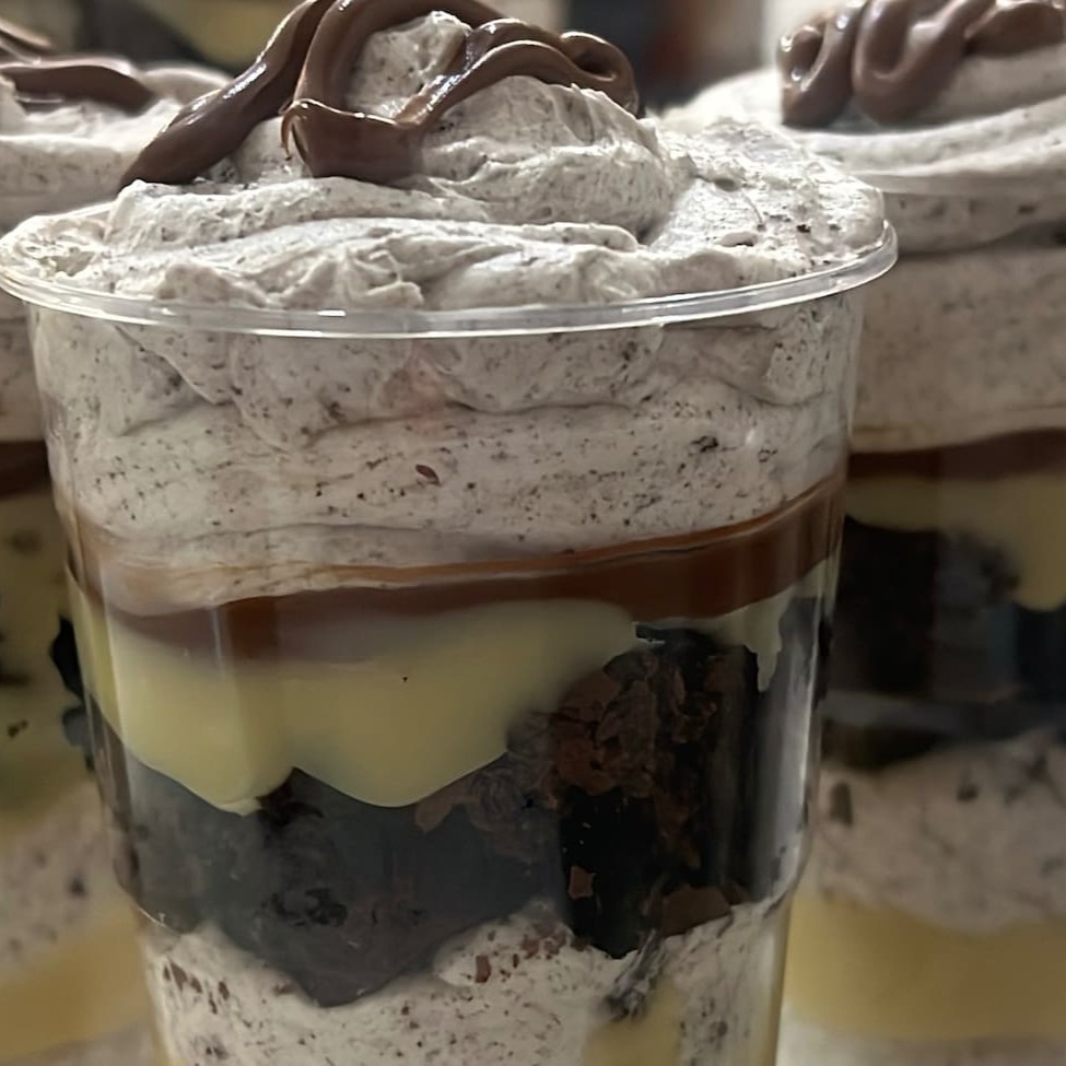Meu parceiro, se tem uma Combinação que vai explodir sua mente, é Esse Aqui! A gente juntou Tudo O Que Tem De Melhor num copo só: Mousse de Oreo - cremoso e arrasador, igual seu amor por biscoito! Brigadeiro de Ninho - aquele creminho que lembra infância e abraço de vó! Nutella - porque tudo fica melhor com chocolate derretido, né? Pedaços de Brownie - úmido, gostoso e feito pra completar a festa!