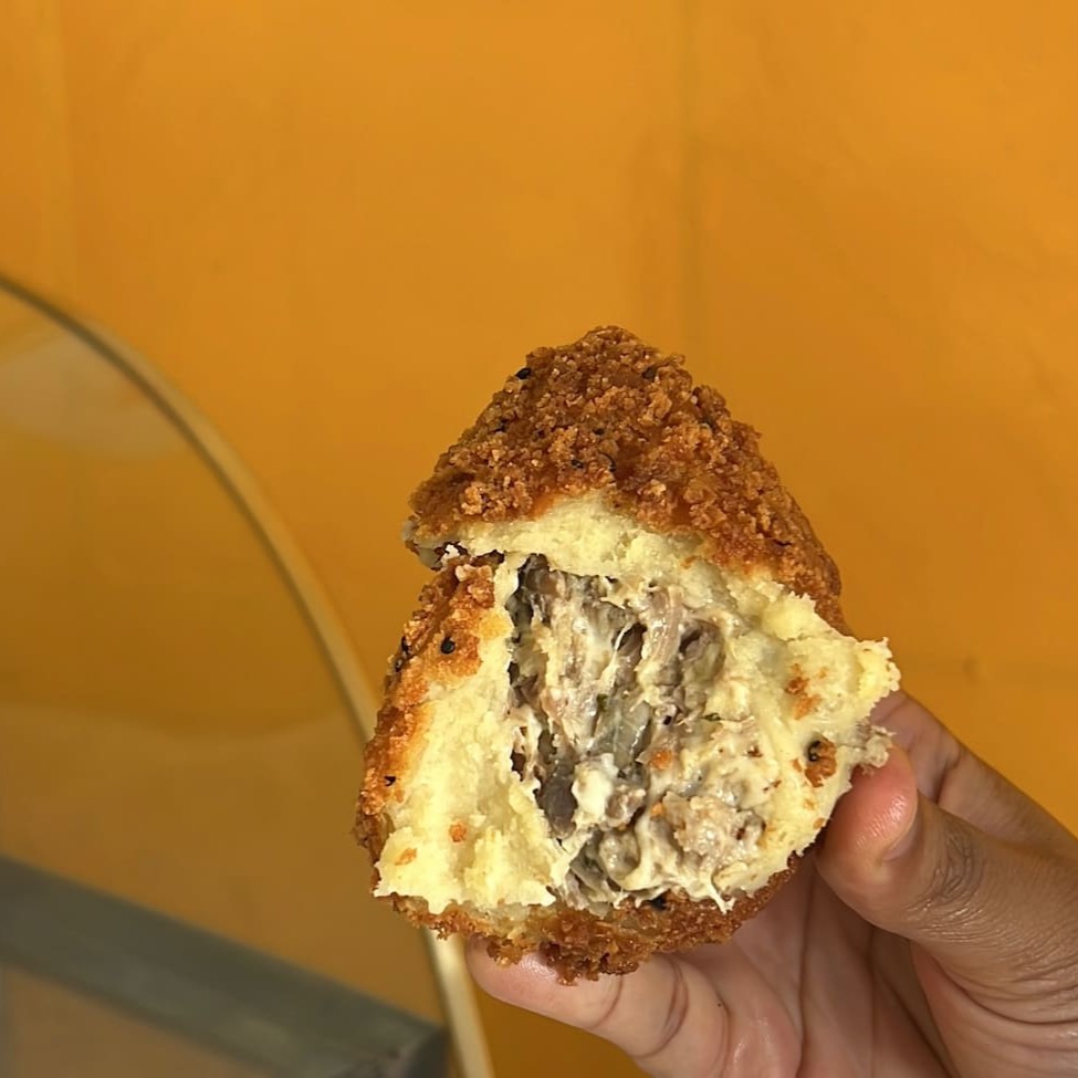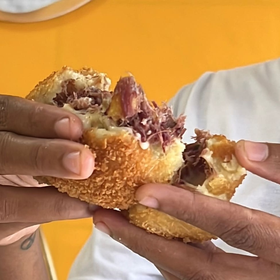 Deliciosa coxinha sertaneja com massa de batata, recheada com nossa carne de charque, banana da terra e com camada generosa de requeijão finalizado na panko