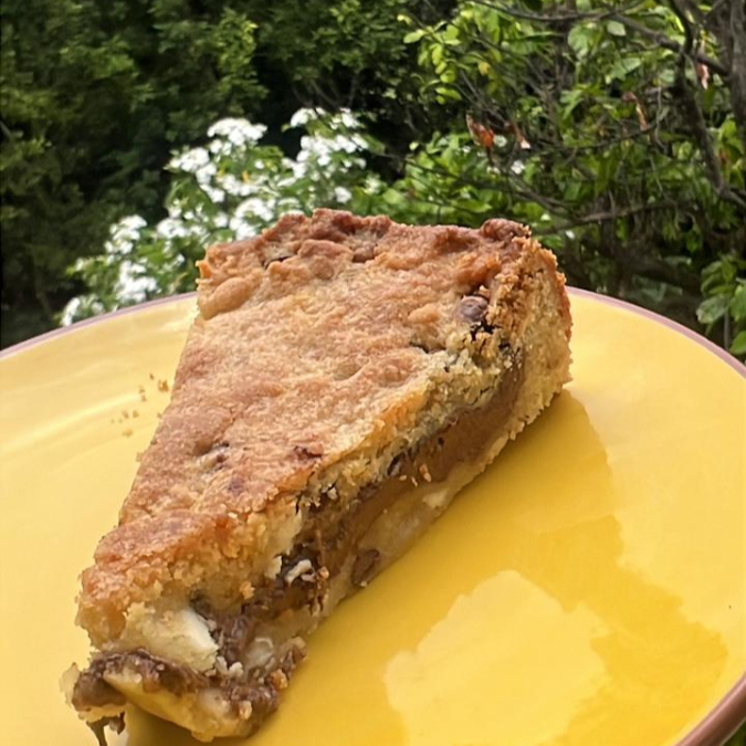 deliciosa fatia com massa de cookie e recheio de nutella original