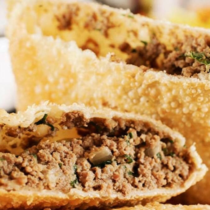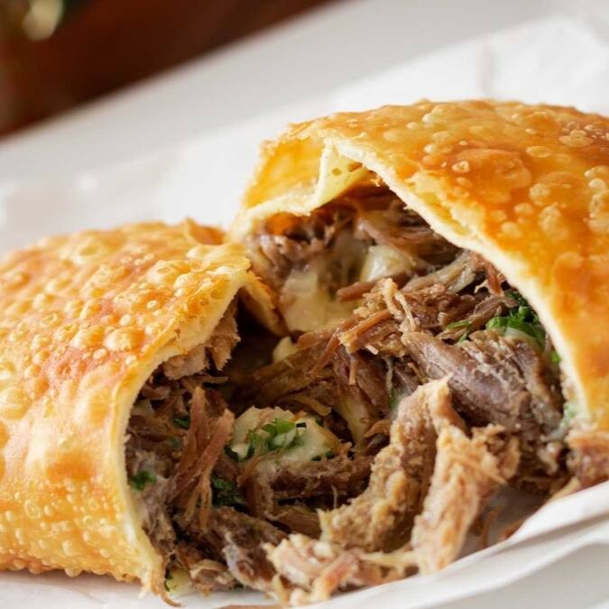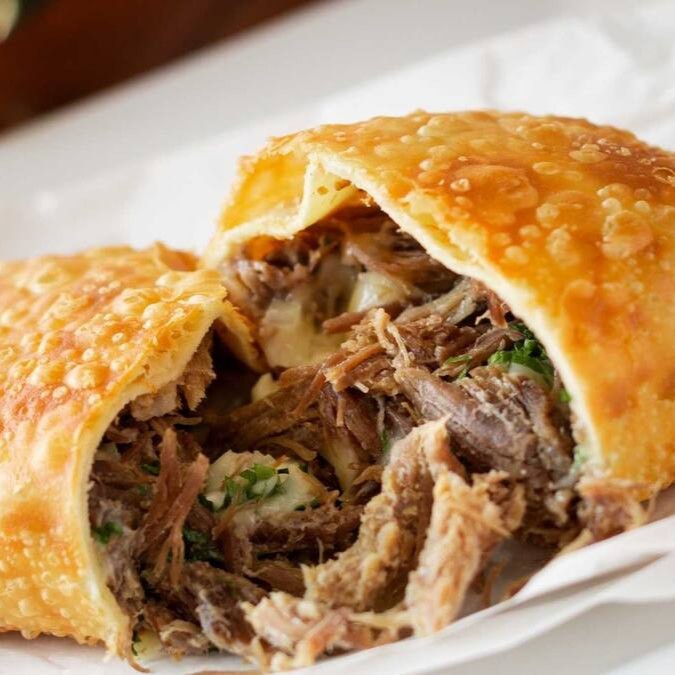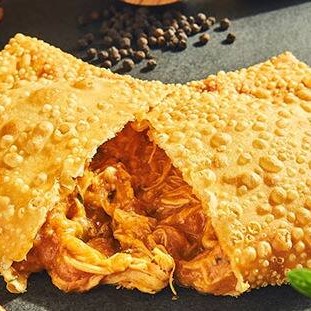 Recheio de queijo, presunto e orégano em um pastel crocante. Um clássico reinventado.