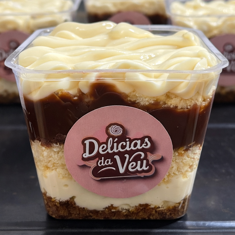 Bolo no pote com massa de chocolate bem fofinha, recheio cremoso e cobertura irresistível de chocolate. Simplesmente delicioso!