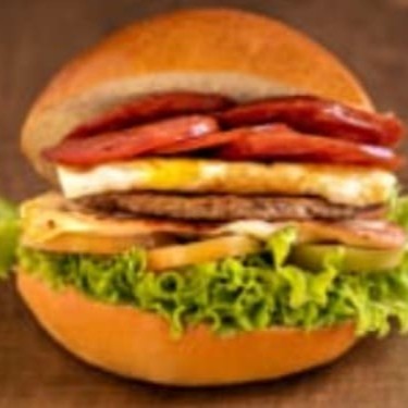 Delicioso Hambúrguer Feito com um Pão Macio,uma Carne bem Suculenta e Saborosa, Muita Calabresa Fatiada,Ovo frito na Chapa, recheado de Queijo e Presunto, mais Salada da casa.