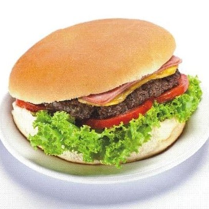 Delicioso e Muito Suculento Burguer - X Salada Composto por : Pão, Carne Macia e Saborosa, Recheado de Queijo e Presunto com Uma Salada especial.