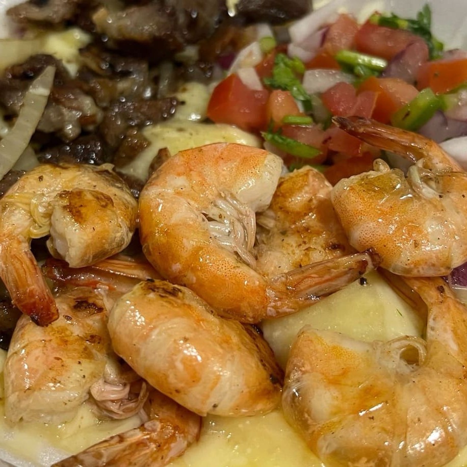 Delicioso Pirão de aipim com queijo, carne do sol e camarão