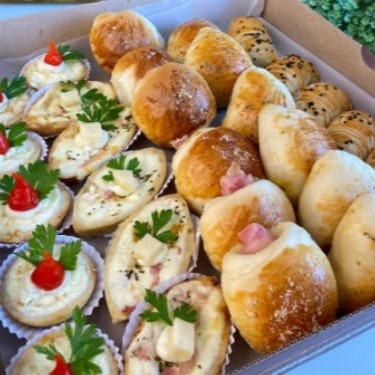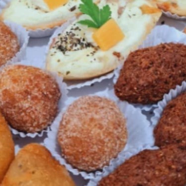 5 Bolinhos de Bacalhau 5 Coxinhas 5 Kibes 5 Bolivianos 5 Empadas de frango 5 Barquetes mista