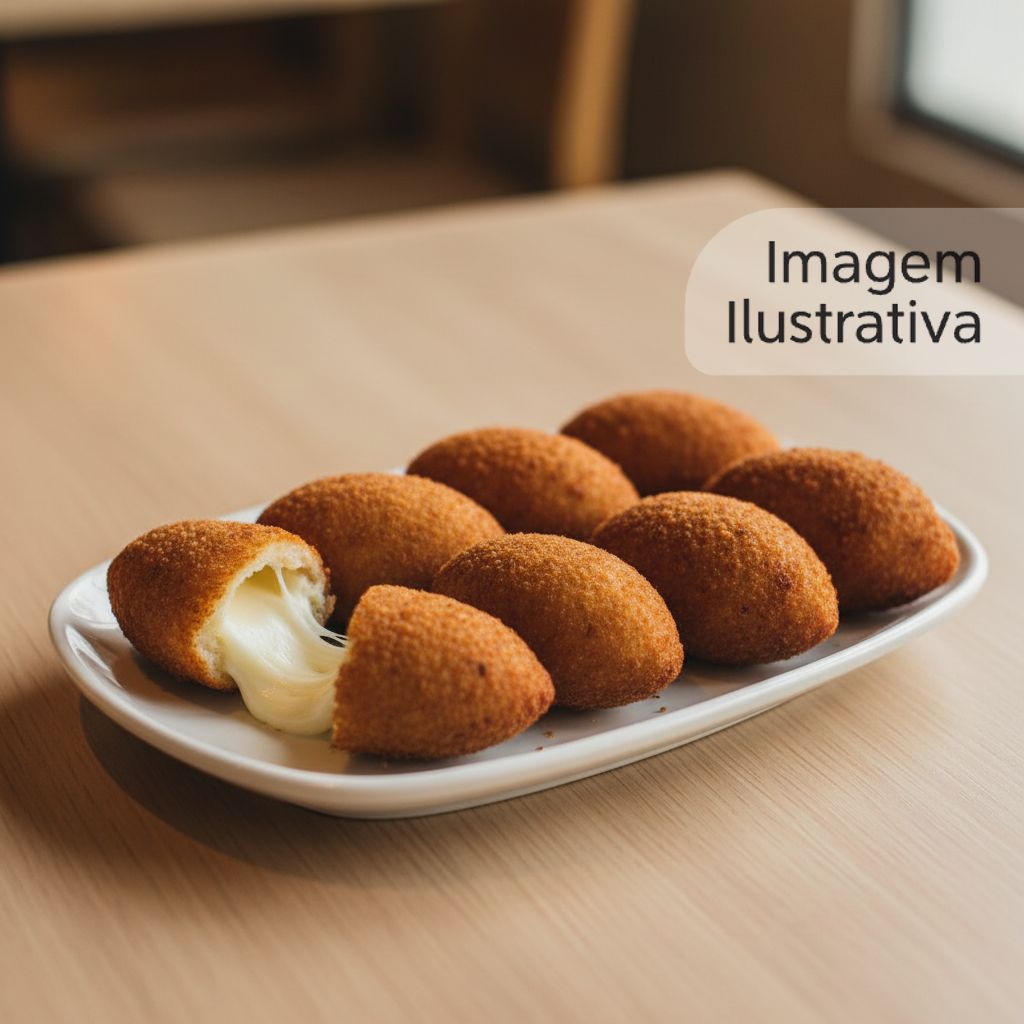 Delicioso bolinho frito recheado com queijo derretido. Perfeito para um lanche rápido e saboroso.