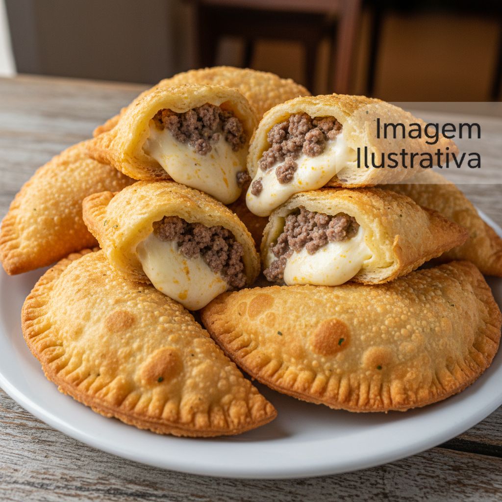 Pastel irresistível com recheio de carne moída e queijo derretido, perfeito para qualquer ocasião.