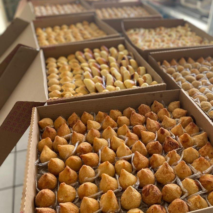 Experimente 60 coxinhas, 50 kibes, 40 risoles misto, 30 bolivianos, 40 croquete calabresa.