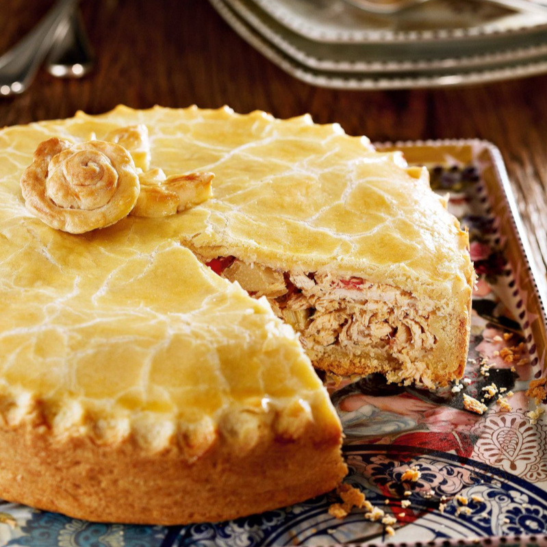 Pastel recheado com frango desfiado