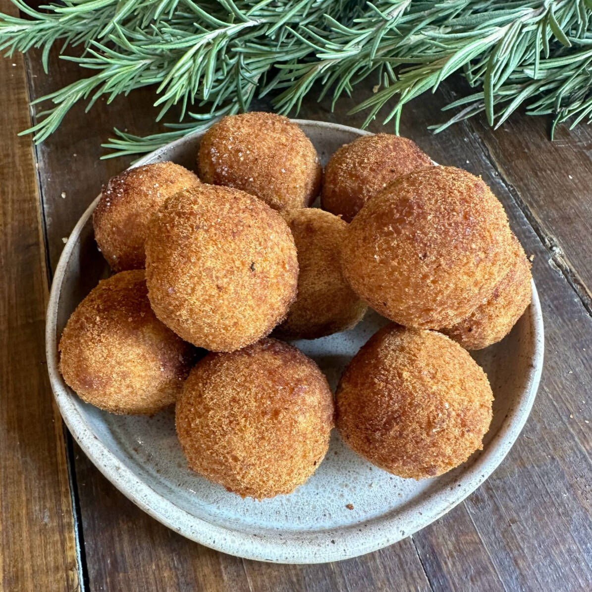Delicioso bolinho de bacalhau, cebola e salsinha, frito até ficar dourado e crocante.