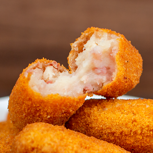 Desfrute dos nossos 15 croquetes (20g cada), meticulosamente preparadas com uma massa especial e generosamente recheadas. Fritas na hora para garantir a máxima crocância e sabor, elas chegam até você irresistivelmente quentes.
