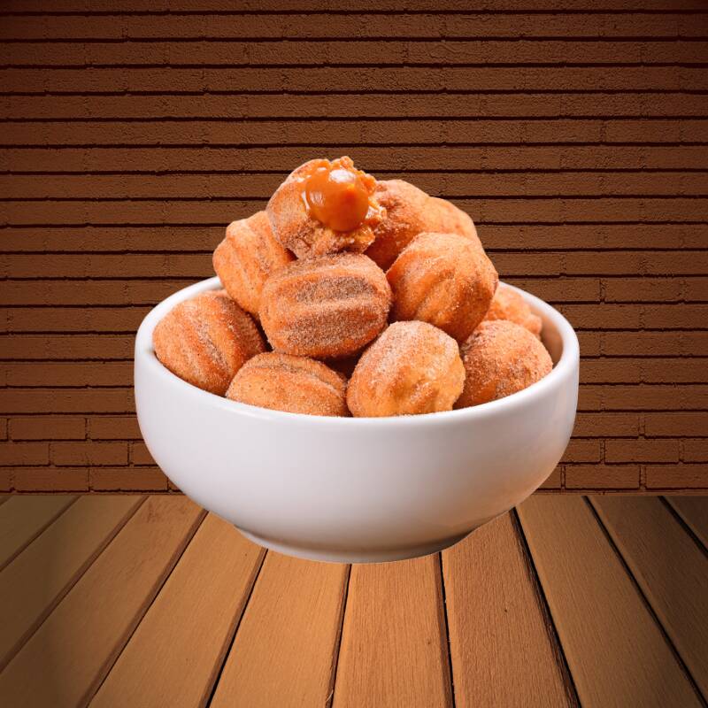 Delicie-se com nossos mini churros (20g cada)! Crocantes por fora, macios por dentro e generosamente recheados com doce de leite cremoso. Perfeitos para adoçar qualquer momento, são a combinação ideal de sabor e textura. Experimente e sinta o prazer em cada mordida!