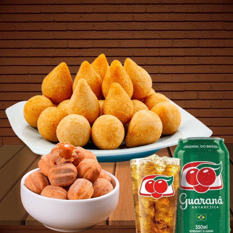 Porção generosa com 50 salgados fritos (20g cada), quentinhos e crocantes, com recheios que derretem na boca. Para adoçar ainda mais, 25 mini churros (20g cada), recheados com doce de leite cremoso, perfeitos para encerrar com chave de ouro + refrigerante de 1L. É a pedida perfeita para compartilhar ou se deliciar sozinho!