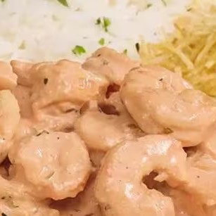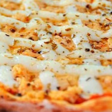 Massa, molho de tomate, camarão, Catupiry, alho frito e orégano.