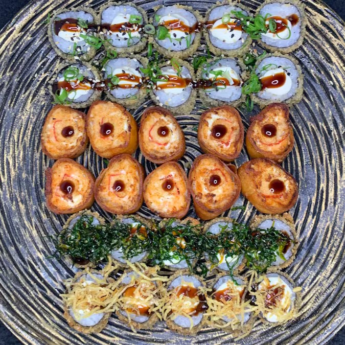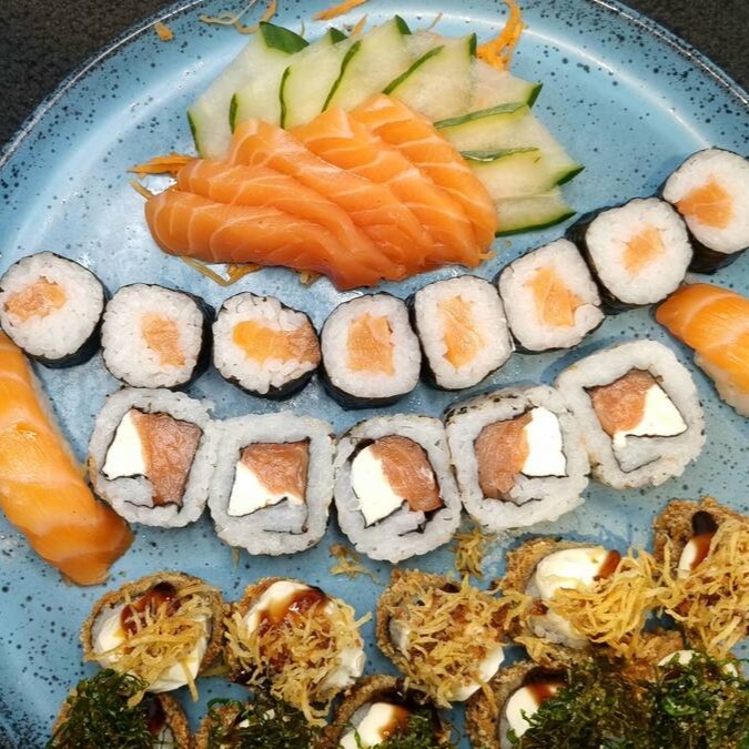 10 Sashimi De Salmão 5 Uramaki De Salmão 5 Uramaki Skin6 Joy kiure8 Shake maki8 Shake grelhado8 Rossomaki Kani com creme 30 Hot crispy(tradicional)