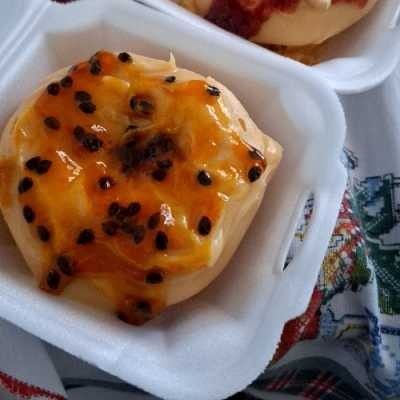 Bolo mini vulcão sabor ninho com geleia de maracujá.