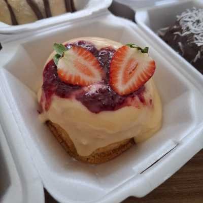 Bolo mini vulcão sabor ninho com morango.