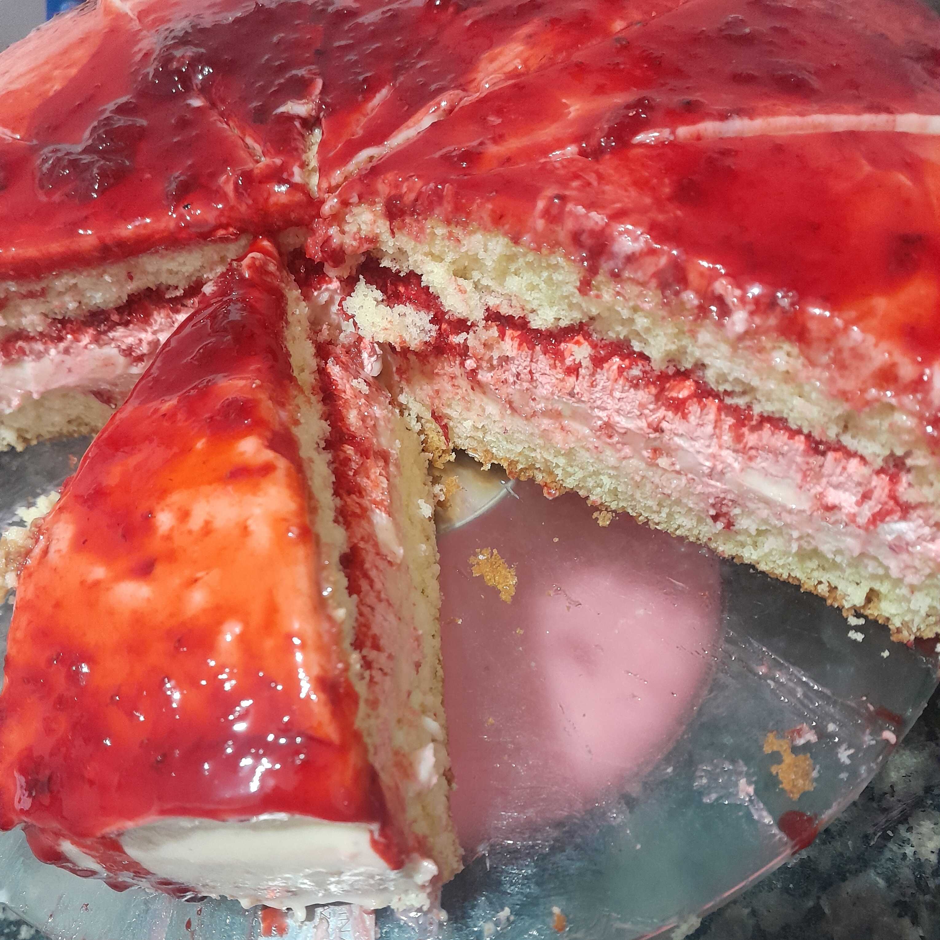 Torta gelada ,recheio de ninho com geleia de morango, massa chinfon