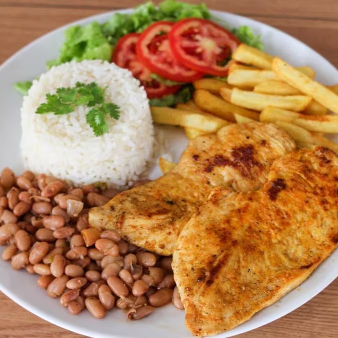 Super Filé De Frango Salada, Fritas, Arroz E Feijão