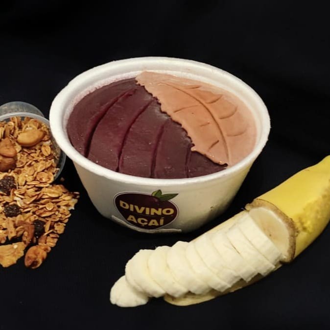 Delicie-se com o nosso Açaí de 500ml, cuidadosamente preparado para você personalizar com até quatro opções de acompanhamentos. Cada adicional é cuidadosamente embalado em potes separados, mantendo a integridade e frescor de cada ingrediente. Apenas um tipo de sorvete ou creme tem a honra de se juntar ao açaí no mesmo pote, mantendo a mistura harmoniosa. Acompanhamentos e sorvetes ou cremes adicionais são igualmente acondicionados em potes separados, garantindo que você tenha a melhor experiência ao saborear o nosso açaí.