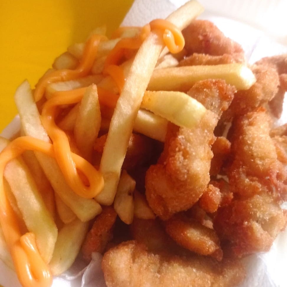 Isca de frango com fritas e cheddar