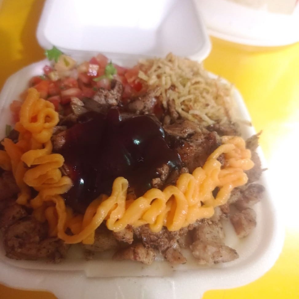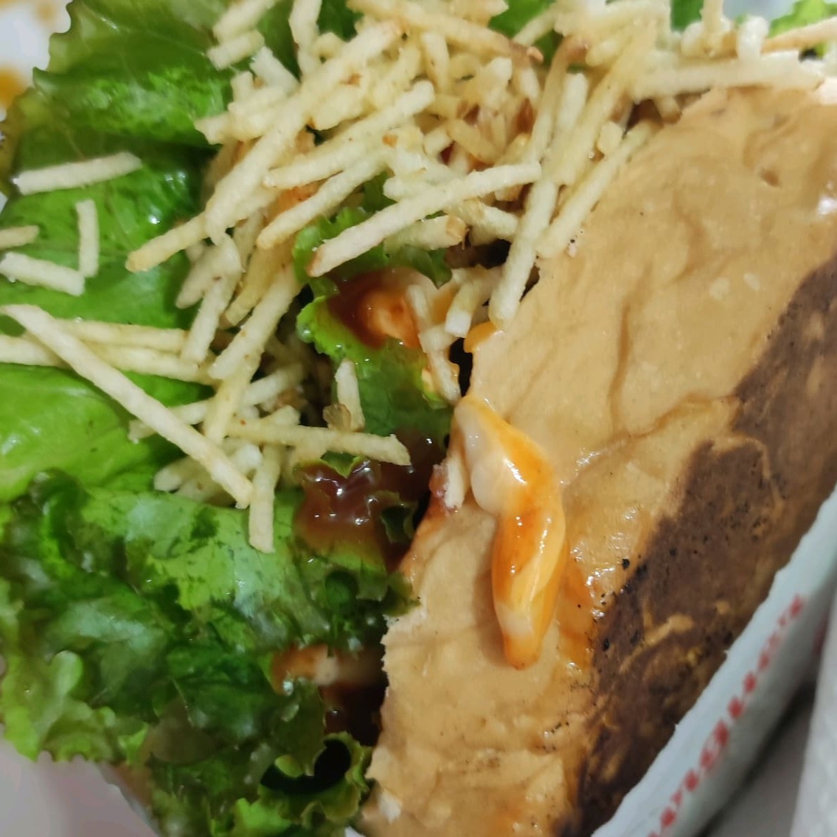 Carne do sol, salada ,batata palha, barbecue e cheddar