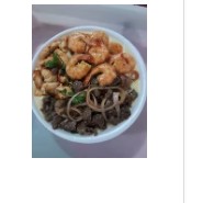 barbecue e molho lambão+ Refri lata 350ml Delicie-se com o nosso 'Terra e Mar', um prato principal irresistível. Este prato é composto por um saboroso pirão de aipim, recheado com camarões suculentos à provençal. Ele é acompanhado por uma generosa porção de carne do sol acebolada, que é um verdadeiro deleite para o paladar. Para completar, temos um frango grelhado perfeitamente, coberto com crocantes batatas palha. Além disso, oferecemos um delicioso molho barbecue à parte, farofa crocante para conferir ainda mais sabor a sua refeição. Tudo é preparado na hora para garantir a máxima frescura e sabor! O prato pesa 700g . Acompanha um refrescante refrigerante em lata 350ml e Molho lambão. Você vai adorar! Serve 1 pessoa