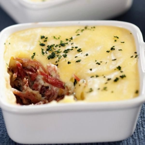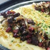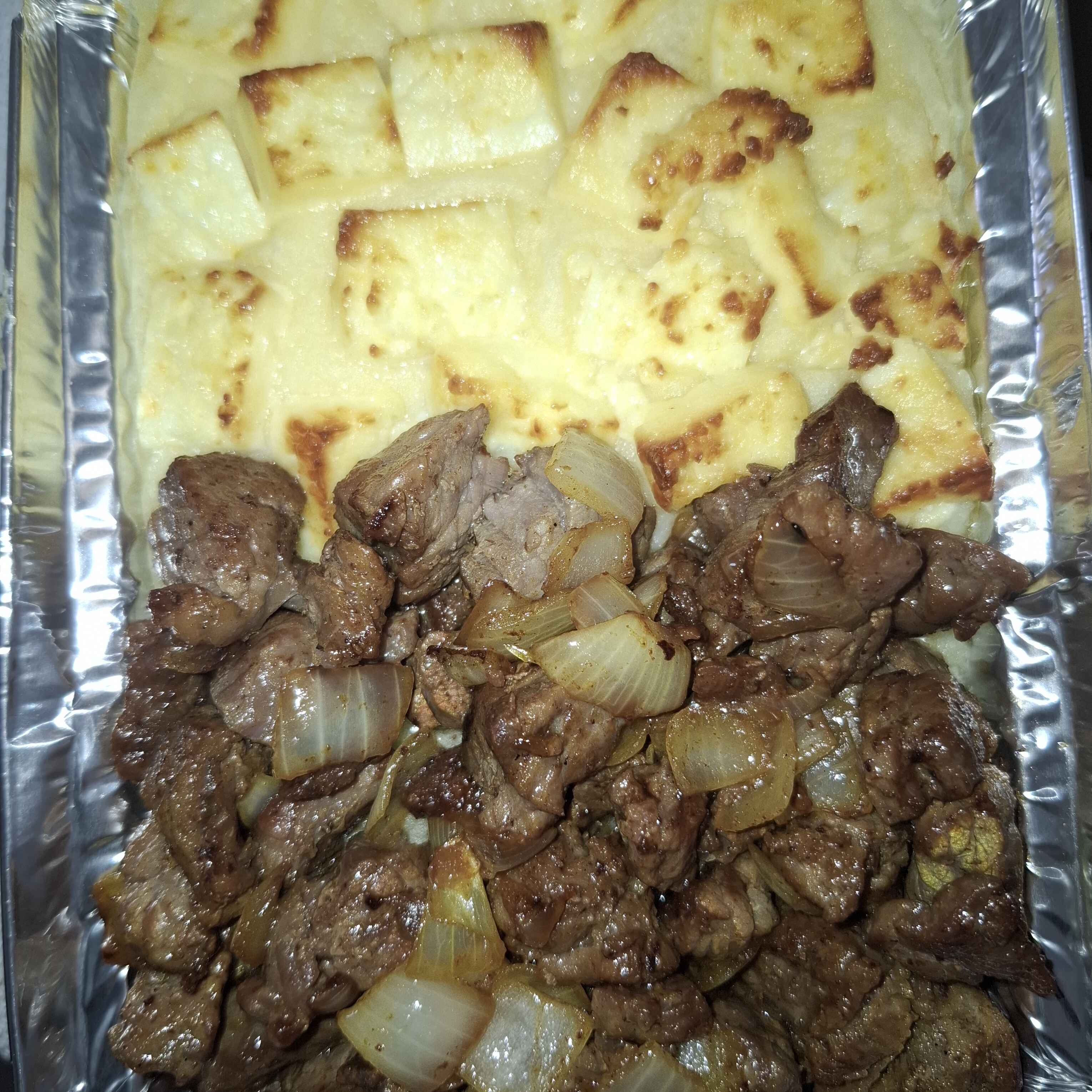 Carne do sol acebolada com pirão de aipim gratinado 700g + barbecue á parte+ vinagrete. Serve 1 pessoa