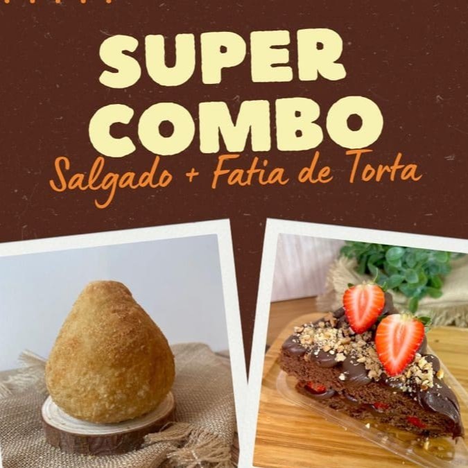 Combo com 01 salgado tamanho lanche e 01 fatia de torta. - Ganhe de brinde 01 Guaraná de 200 ml.
