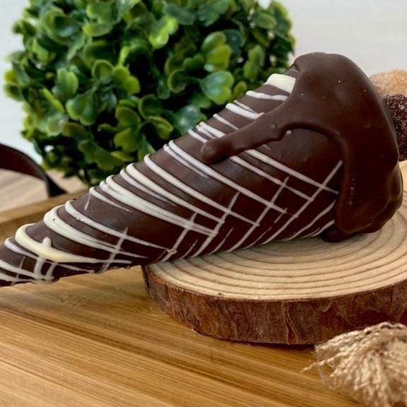 Cone banhado no chocolate recheado com creme de Ninho e Nutella.