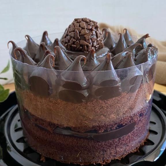 Bolo de chocolate com recheio de brigadeiro. Produto congelado (É preciso aguardar descongelamento 3h em temperatura ambiente para consumo) - 24 cm diâmetros