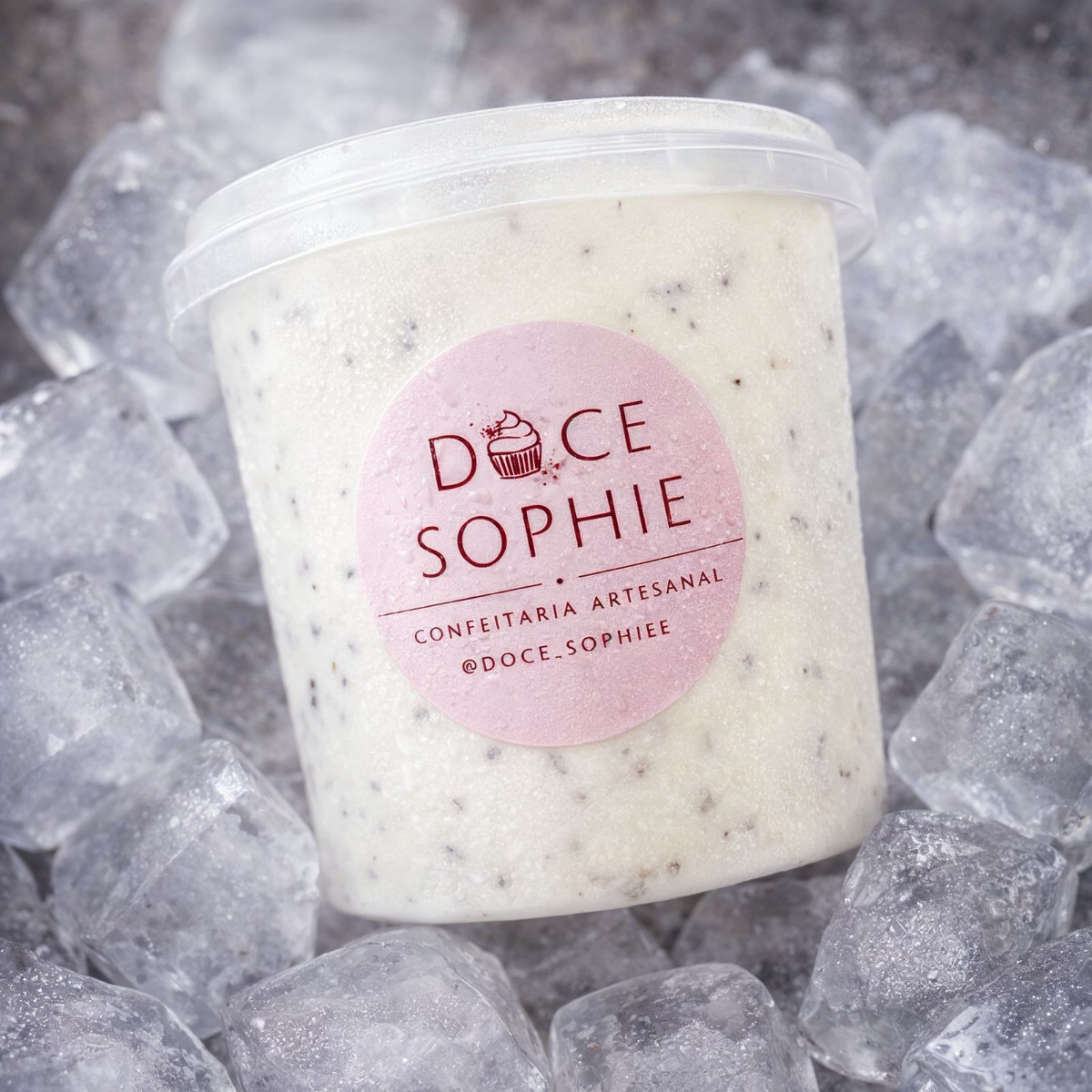 sorvete cremoso com toque de baunilha e chocolate nobre ao leite picado
