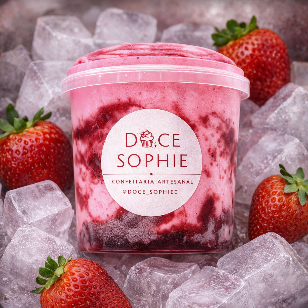 Aquela lembrança de danoninho!!! sorvete cremoso de morango e geleia artesanal de morango