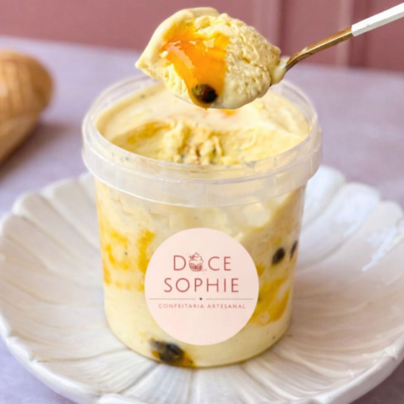 Sorvete super cremoso de maracuja com geleia de maracuja