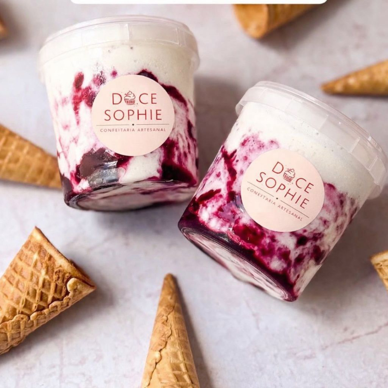 Sorvete cremoso de ninho com geleia artesanal de frutas vermelhas