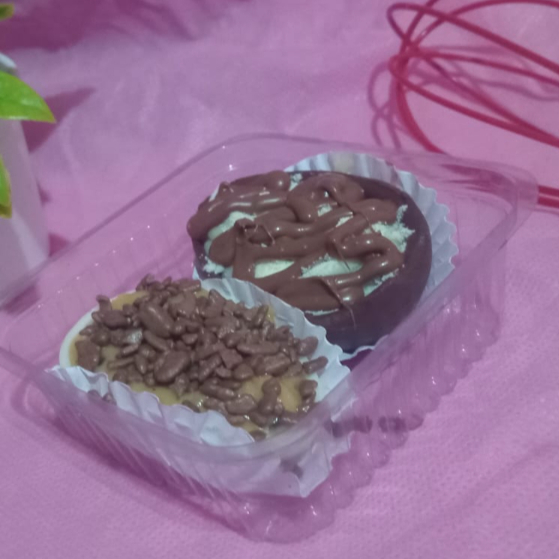 Dois mini ovos de colher com casquinha de chocolate meio amargo, trazendo o equilíbrio perfeito entre o doce e o intenso: 🥄 Um recheado com dois amores, a combinação perfeita de brigadeiro tradicional e brigadeiro branco, super cremosos e cheios de sabor. 🥄 Outro com brigadeiro de ninho irresistível, acompanhado creme de avelã e finalizado com um delicioso biscoito Oreo por cima, deixando tudo ainda mais especial. Perfeito para presentear ou se deliciar em momentos únicos! 💛