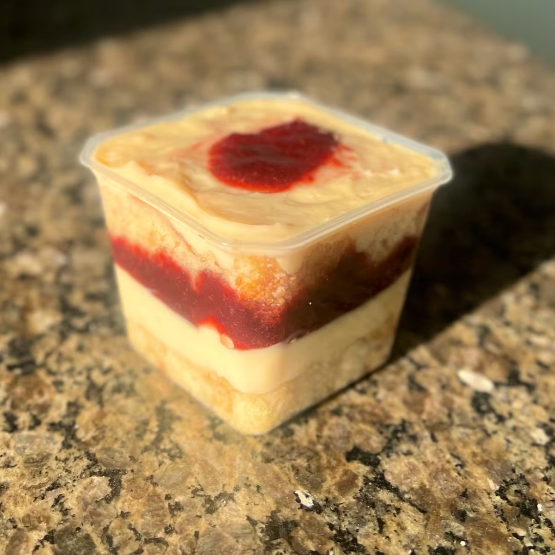 Bolo de pote com massa branca super leve e macia, com recheios super cremosos de Ninho e morango.