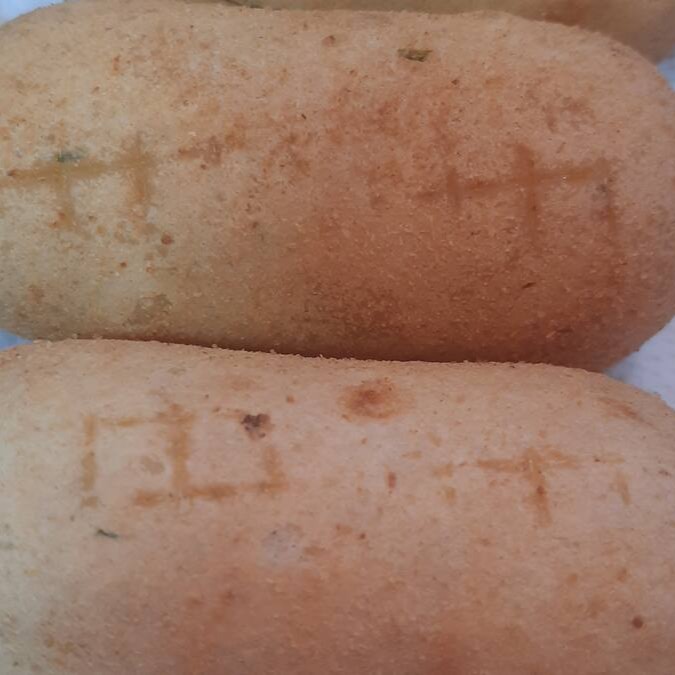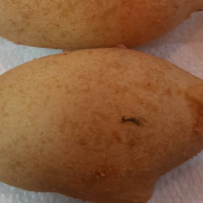 Risoles recheado com presunto suculento e queijo derretido, envolto em uma massa crocante.