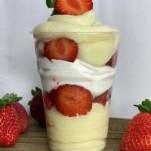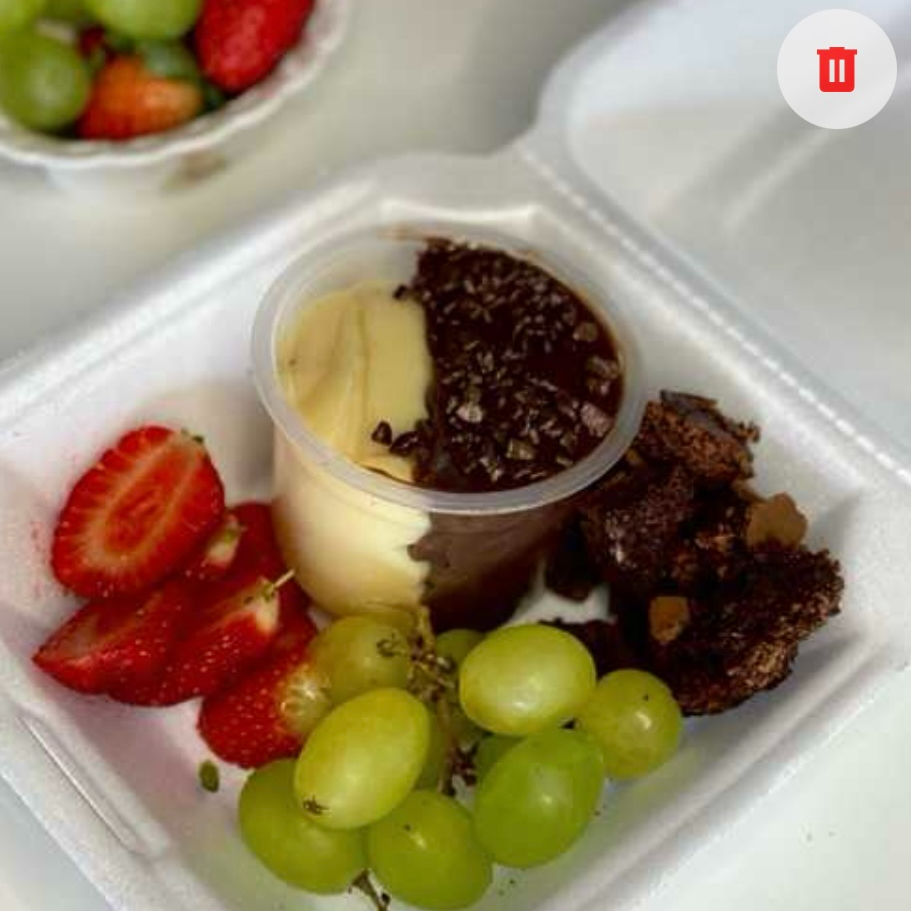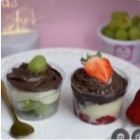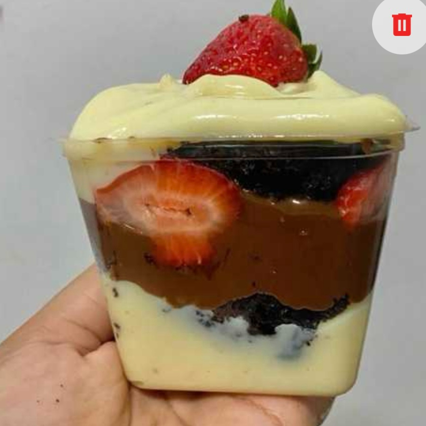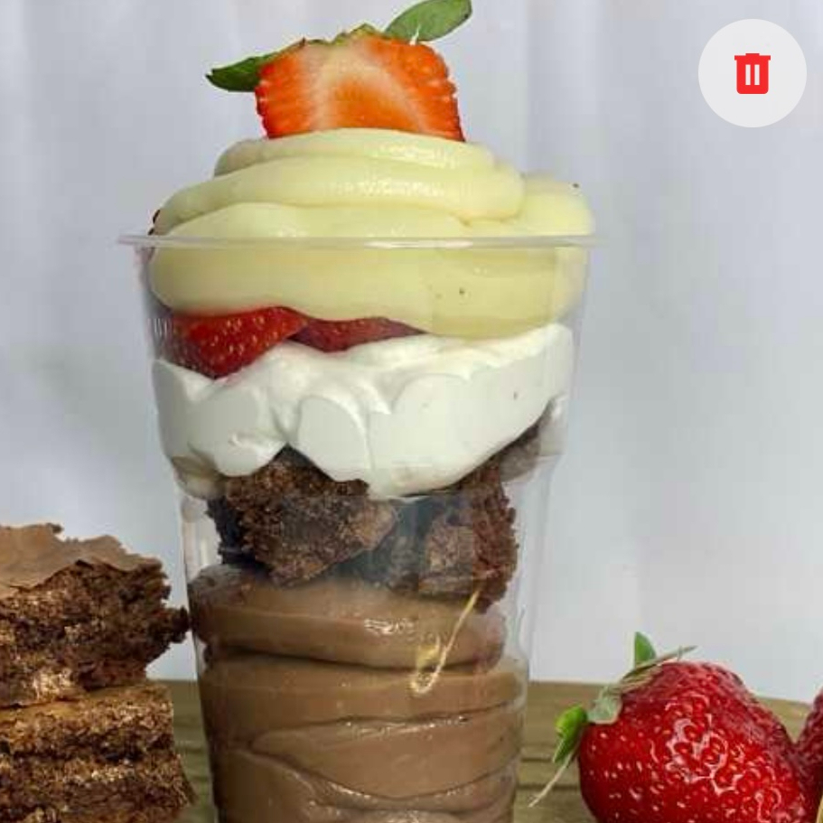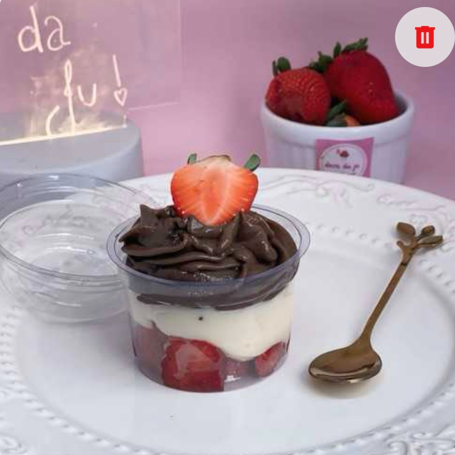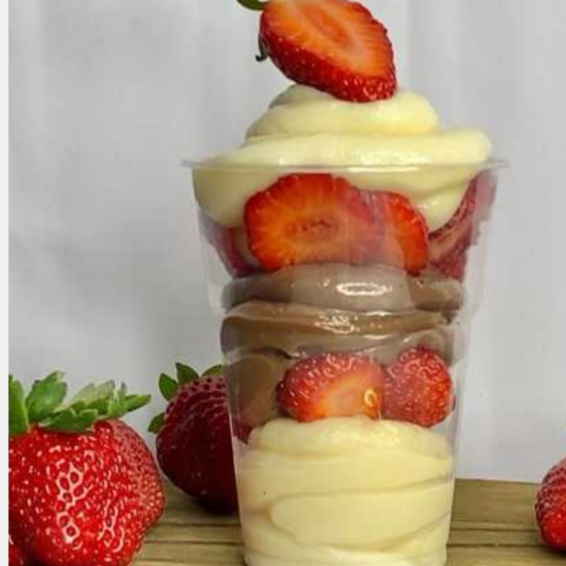 brigadeiro de ninho ,brigadeiro 50% cacau , mousse de ninho e morango fresco