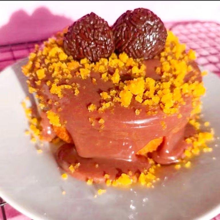 Bolo de pote com recheio de mousse de Ninho e cobertura de brigadeiro de Ninho.