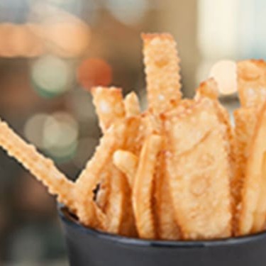 Tirinhas de massa de pastel frita.