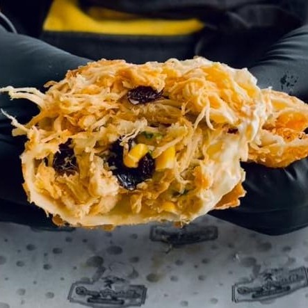Frango, Catupiry, Pimenta Calabresa, Uva Passas, Açúcar, Canela