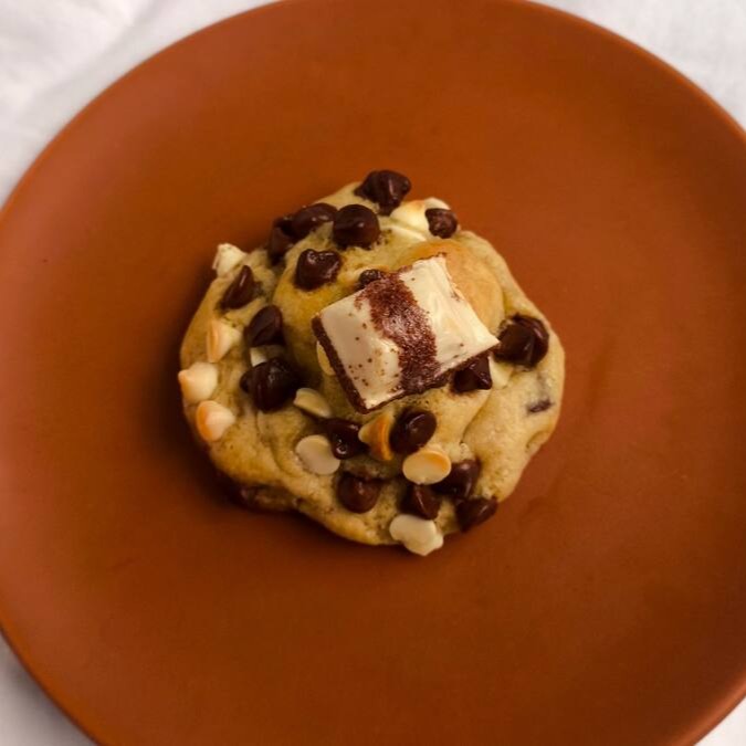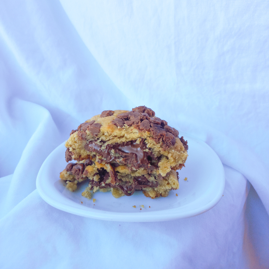 Cookie de chocolate recheado com Kinder Bueno cremoso, macio por dentro, crocante por fora e simplesmente viciante